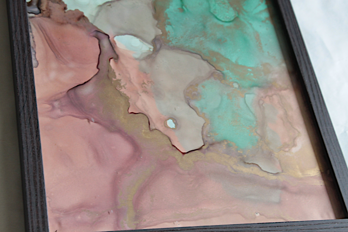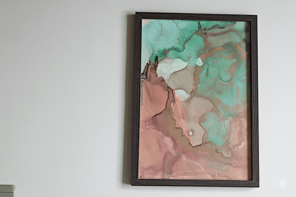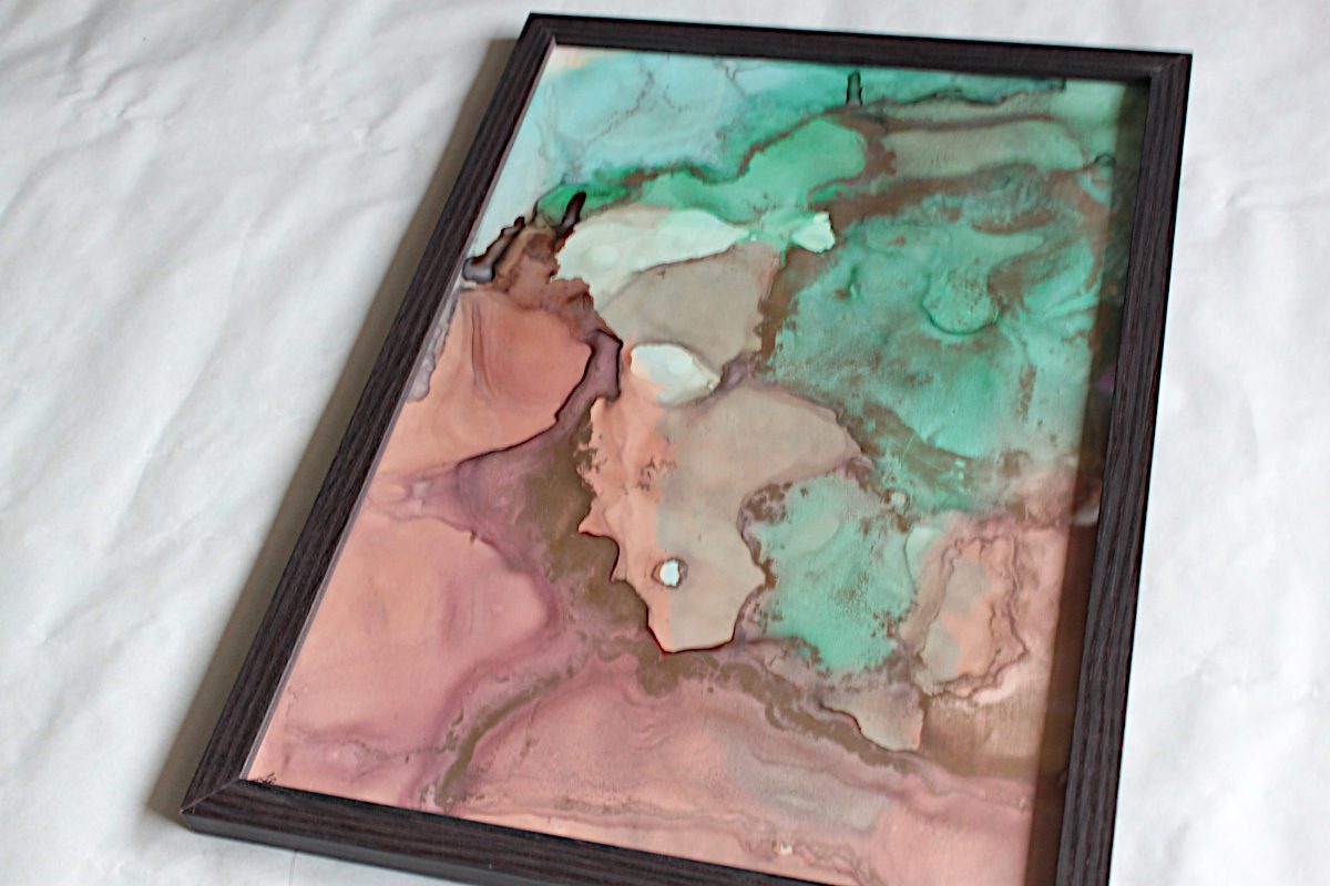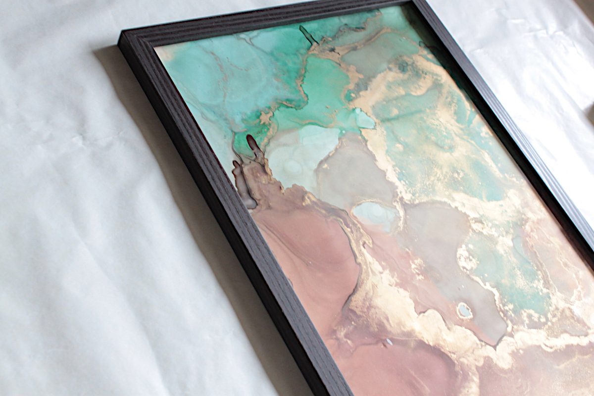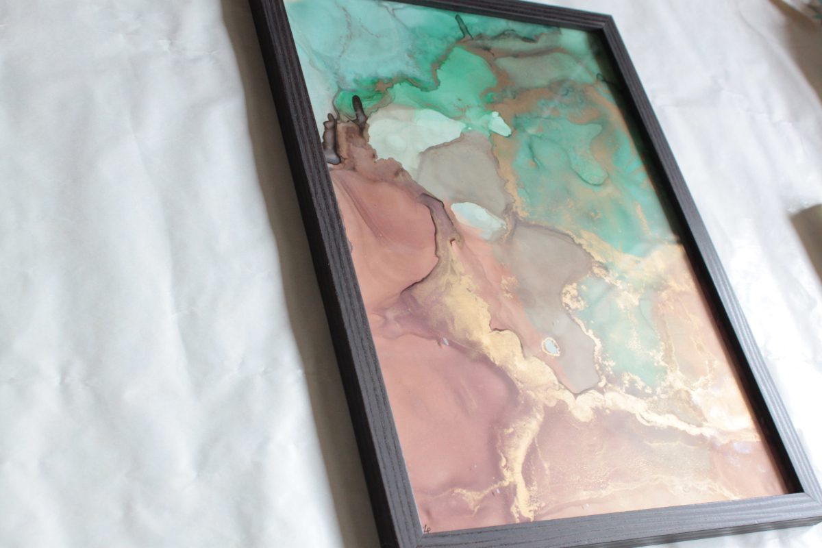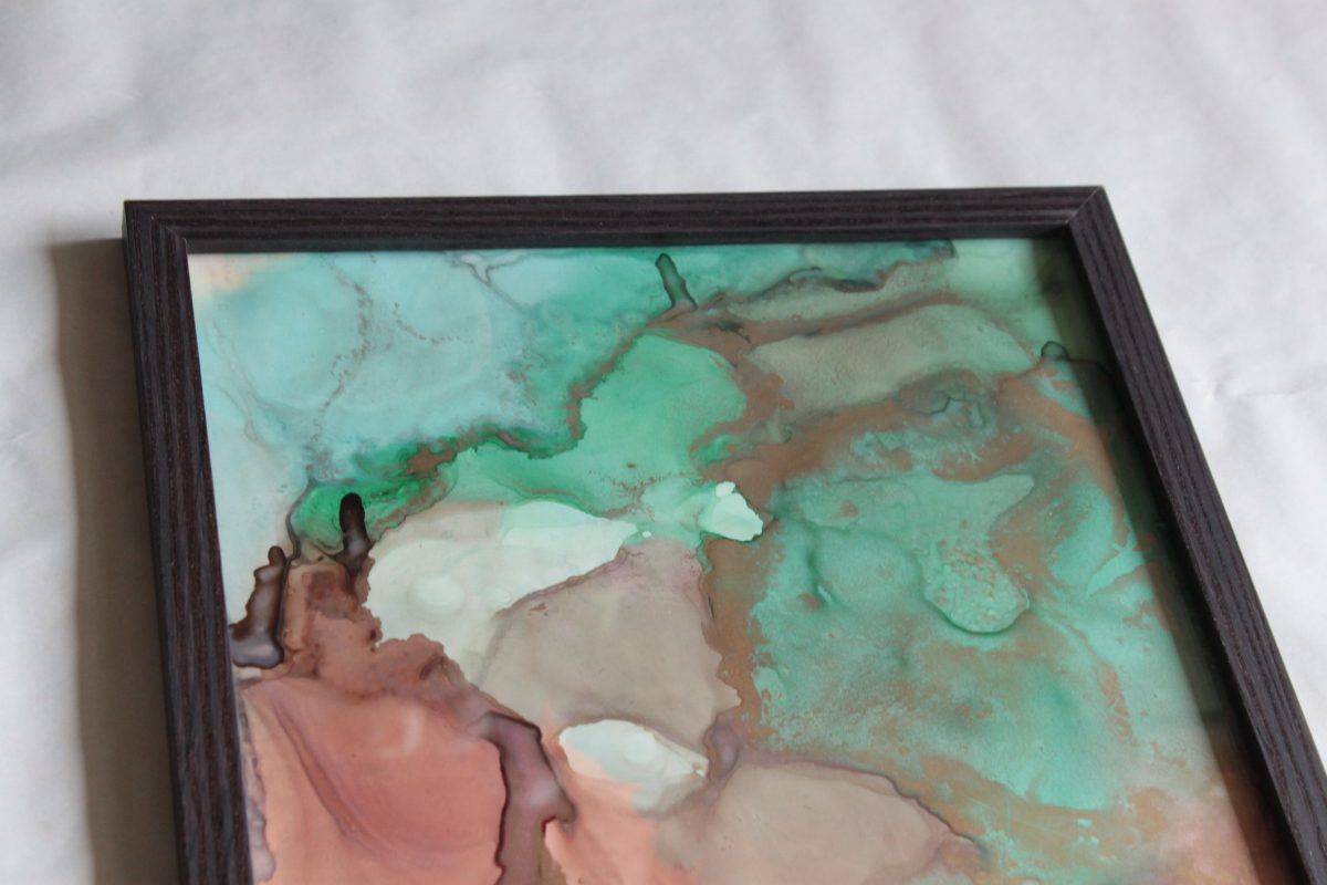 Peinture abstraite, originale, A4 réalisée avec de l’encre à alcool.