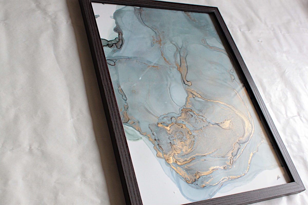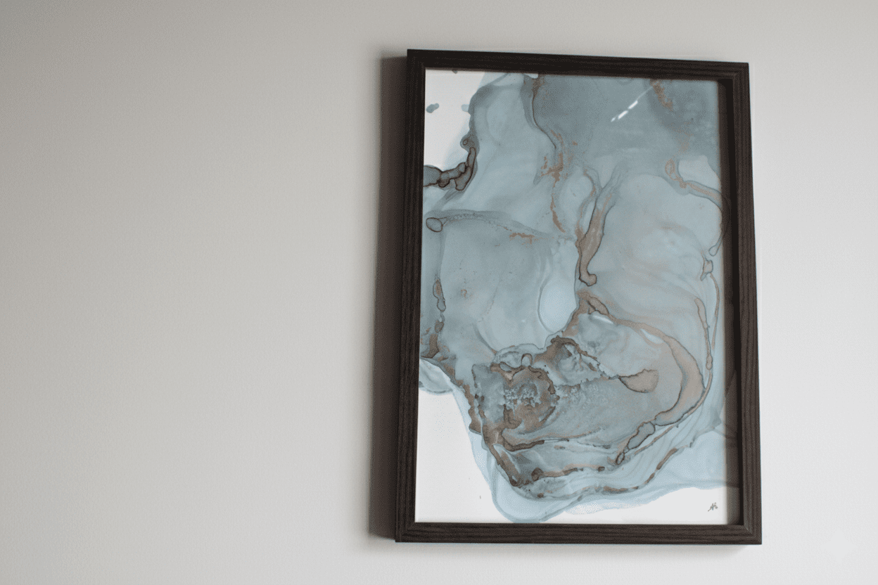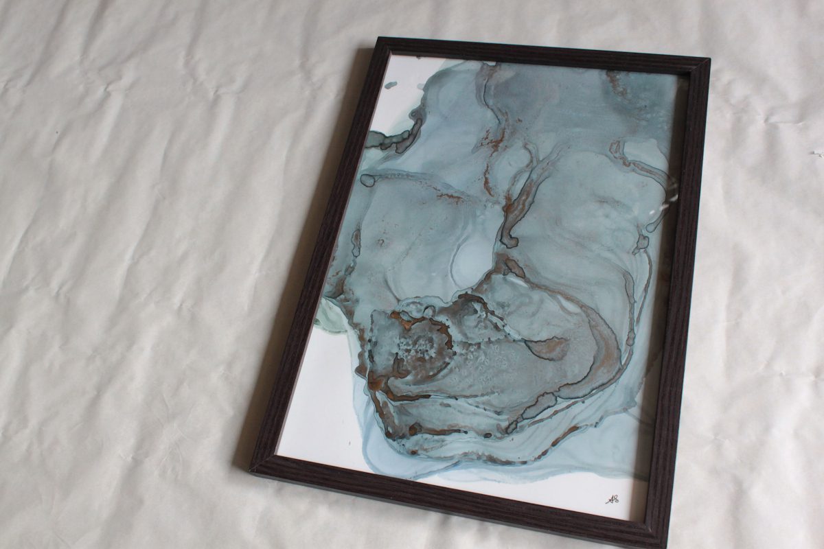Peinture abstraite, originale, A4 réalisée avec de l’encre à alcool.